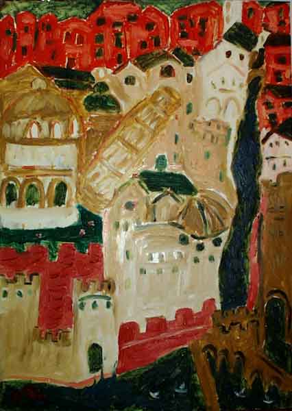 Il periodo “Nero” intorno agli anni ’55/’58 continua sullo stile impressionista realizzando la città in tutti i suoi aspetti, questo è il periodo che avvicinerà Rossana Biagi a compiere il passaggio al mondo della scienza e della scoperta.